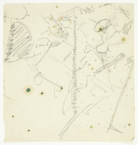Curator: There's an arresting simplicity to this work. Edvard Weie's "Kompositionsstudie til Langelinje-billedet," created between 1923 and 1927. A pencil drawing residing here at the SMK. What are your first impressions? Editor: Faint and fleeting, almost a memory sketched on paper. A kind of dreamscape of a harbour, perhaps? Curator: It's a preparatory study for a painting, indeed of Langelinje. Weie's abstract landscape really emphasizes a scene from modern Copenhagen, highlighting an environment made busy by industry. Notice how he plays with geometrical abstraction. How do those basic lines and shapes hit you? Editor: I notice that while minimal, each line feels weighted. Like he's trying to capture not just the place, but the underlying structure. A society under construction, represented via scaffolding and ships? Curator: An astute observation! The use of minimal detail could imply universal themes beyond just this harbor. It might touch upon industrial ambition across post-war Europe. Do the harbor's established history and Copenhagen's identity have relevance here? Editor: Certainly, art of this period often reflects a national consciousness, grappling with modernity. Though just a sketch, I think Weie’s pencil becomes a tool not just for observation but also for shaping perceptions. By showing so little, is he urging us to think about how harbors, especially those of growing importance, are depicted in this pivotal point in history? Curator: It’s a lens into a specific place and time, while the sketched elements add layers of visual metaphor, suggesting the changing social, political landscape after WWI as well. What final thought does this spark in you? Editor: A delicate record that hints at the intersection of national identity, evolving urban spaces and symbolic, rather than direct, artistic portrayal. Curator: Agreed, there’s an ephemeral, subtle energy in the image; it pushes us to consider how basic visual symbols gain resonance across generations.