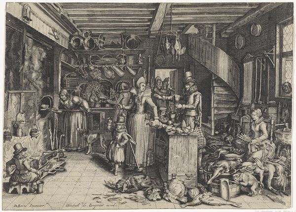 Andreas Bretschneider created this engraving, titled "Exempel und Lehr Jetziger Welt Lauf," which translates to "Example and Lesson of the Current World's Course," during a time of significant social and political change in Europe. The image depicts a boisterous feast, overflowing with food and revelry. It seems that Bretschneider uses this scene to critique the excesses and moral decay of society, during the 16th and 17th centuries. The characters are consumed by their immediate desires, while the chaos suggests a society teetering on the edge of collapse. A woman nursing a child seems oblivious to the madness, perhaps signifying innocence, or maybe the unending cycle of life amidst chaos. The abundance of food also highlights the stark inequalities of the time, contrasting the lavish lifestyles of the wealthy with the struggles of the poor. As we reflect on this image, we can question what lessons it still teaches us about our own world, our values, and our responsibilities to one another.