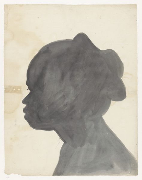 Curator: This is "Silhouetportret Jantje Brandes," a portrait made with ink on paper in 1783. It presents the profile of a young child rendered as a silhouette. Editor: There's a haunting simplicity to it, isn't there? It’s so stripped back, emphasizing the shape, the curve of the nose and chin. It also conveys the vulnerability of childhood. Curator: Silhouette portraits were popular then, especially among the middle class. They offered a relatively inexpensive way to have a likeness of a loved one made. Think of them as the snapshots of their time. The process often involved projecting a shadow onto paper and then tracing and filling it in. Editor: It makes you wonder about accessibility, doesn’t it? Who had the privilege to be remembered in this way? Whose stories are prioritised even when rendered as a simple shadow? Curator: It speaks to the rising interest in individual portraiture during the late 18th century and, the changing social values around family and domestic life. We see this shift reflected in other visual mediums too. Editor: Yes, the rise of sentimentality during the Enlightenment period certainly shaped portraiture. And you can see in the soft rendering around the face how such a style would work to flatter the sitter by obscuring unwanted details or ‘flaws’. Curator: Absolutely. It wasn't always about pure accuracy. And with this example, what stories were attached to Jantje? Who was this young individual, what circumstances allowed her silhouette to be captured, preserved and displayed? Editor: The ephemerality of childhood and the social context that allowed the image to exist—that’s where the image's enduring value truly lies. The object signifies loss but it should be used to tell untold stories of inequality from the 18th century. Curator: Indeed, these glimpses into the past offer more than meets the eye and raise worthwhile questions to consider. Editor: A small drawing with big implications, then!