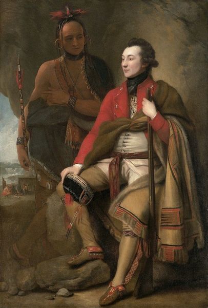 Pompeo Batoni painted this oil on canvas portrait of Sir Sampson Gideon and an unidentified companion sometime in the 18th century. Look closely at the way Batoni handles the oil paint, especially in the clothing of these men. Think about the textile production and the highly skilled labor required to produce such immaculate garments, and the luxurious lace trimming! The painting is a testament to the material culture of the Enlightenment, a time when refined craftsmanship and the patronage of the wealthy elite converged to create objects of beauty and status. The garments, the classical architecture, and the learned pose all point to a sophisticated society where the skilled labor of artisans and the wealth of patrons were intertwined. The artist's hand is evident in the meticulous brushwork, but so is the social context that made such a commission possible.