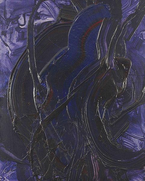 Curator: Standing before us is Emily Carr's "The Mountain," an oil on canvas painted in 1933. Editor: My initial impression is overwhelming. The sheer mass of the mountain, rendered in such intense blues and purples, it’s…monumental. Curator: Carr, heavily influenced by indigenous art and culture of the Pacific Northwest, sought to depict the spiritual power she found in nature. She lived and worked in British Columbia, and was deeply moved by the landscapes of the area. This painting, with its prominent peak looming over a small village, it could symbolize something? Editor: The brushstrokes themselves contribute so much. Notice how they follow the contours of the mountain, swirling and pulling the eye upwards. The texture she creates with the oil paint evokes a sense of geological movement, as if the mountain is breathing. Also the verticality of the canvas pushes my line of sight to the skies. Curator: Absolutely. Carr's work wasn't always well-received initially, struggling for recognition in a male-dominated art world and prevailing conventions for landscape paintings, but figures such as Lawren Harris saw great potential in it. She often juxtaposed indigenous settlements with the encroaching landscape, highlighting the tensions between civilization and nature in early twentieth-century Canada. Editor: I see the village at the base of the mountain almost as a fragile afterthought. And how the artist renders this mass, it isn't about accurate depiction, but instead, an emotional or felt reality. Do you agree with that reading of Carr´s choice in brushstrokes? Curator: Exactly, I think this depiction speaks of the history and complex identity Carr has developed through her lived experiences, rather than mere landscape depiction. In a way, this is modernism's way of dealing with indigineity, progress, nature. Editor: Reflecting on the painting, it seems so strange, alienating even in a sense, for Carr to portray an apparently 'simple' scenery, because there´s more than just mountain, oil and brush, is a complex web. Curator: Indeed. Carr’s “The Mountain” serves as a reminder of art's ability to engage in a broad socio-political narrative as a depiction of an landscape.