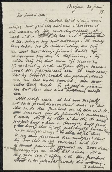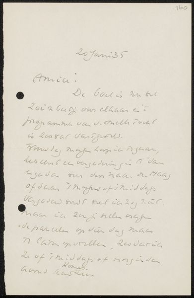 Editor: This is a drawing titled "Brief aan Jan Veth," made with pen and ink on paper by Richard Nicolaüs Roland Holst. It was probably created between 1893 and 1895 and now resides in the Rijksmuseum. It's so interesting to see an artist's handwriting and thought process captured in this way. What symbolic meaning do you think is embedded in a personal letter like this? Curator: The beauty of an everyday image, a personal letter elevated. Here we see the embodiment of cultural memory, the intimate act of correspondence turned into a visual artifact. Consider the hand itself, the tool which translates thought into script. Its symbolic weight carries far beyond mere transcription; it speaks to connection, relationship. Editor: So, the act of writing itself becomes the message? Curator: Precisely. The imperfection of handwriting humanizes the correspondence, contrasting with the formality of print. And notice how the script dances across the page. What rhythm does that visual texture suggest to you? Editor: It's a bit frantic, almost. A stream of consciousness, perhaps? Definitely not a formal tone. Curator: It evokes intimacy. We are privileged observers of a private dialogue. Now consider Jan Veth, the recipient. Holst chose to preserve this exchange, recognizing its importance. Perhaps he sought to immortalize their bond, or record a particular moment in their intellectual exchange. Don't you think so? Editor: Yes, the fact that it ended up in a museum gives a significance to their friendship and intellectual exchange. It wasn't meant to stay private. I learned so much from your insight! Curator: And I from your astute observations! Recognizing the interplay of symbol and context truly brings the work to life.