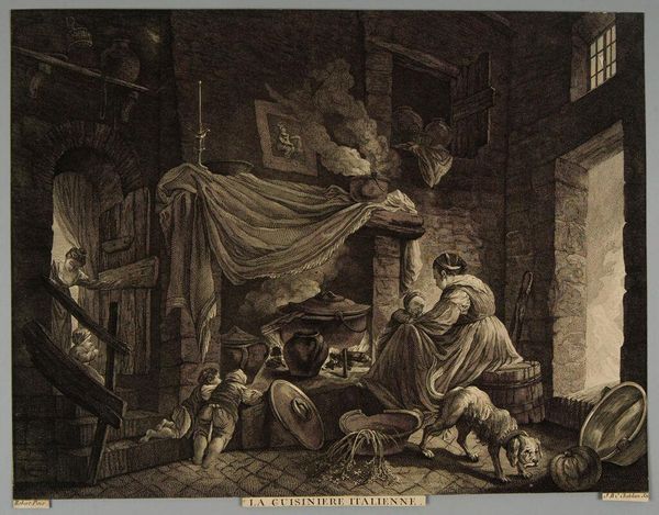 Editor: This is Charles Turner's "Pembury Mill," an engraving. It's got such intricate detail, capturing this busy scene with the mill and all the workers. What stands out to you? Curator: The labor! Look at the composition, how the mill's structure itself is foregrounded, emphasizing the means of production. Consider the social context: what materials are being processed? Who are the laborers involved, and what is their relationship to the final product? Editor: So, you see the focus on the work itself as the main subject? Curator: Precisely. The materiality of the mill, the wheel, the goods being transported – it all speaks to the economic activity and social structures of the time. What is consumed and what are the working conditions? That's what intrigues me. Editor: That gives me a whole new perspective to consider. Thanks! Curator: My pleasure. It's about seeing the art within the work, the process within the image.