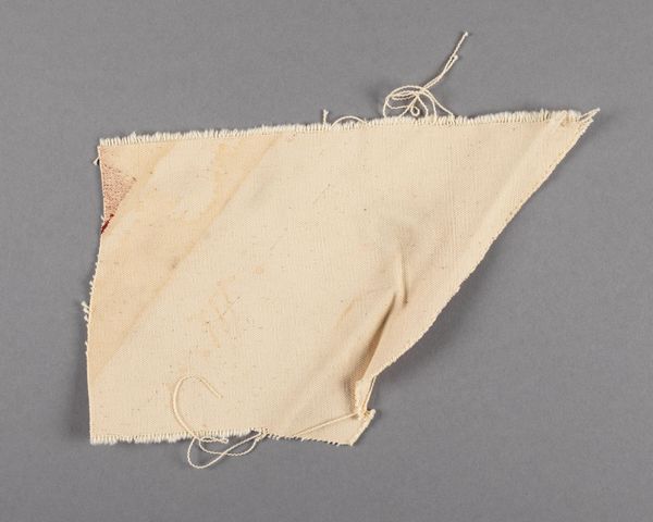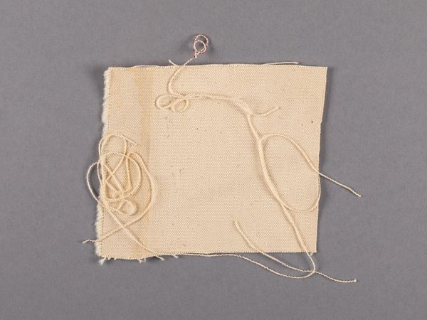 Editor: Here we have Barnett Newman's "Canvas fragment," its date is unknown. It's a small, unassuming piece. What do you see in this seemingly simple remnant? Curator: This fragment holds echoes of Newman's larger canvases. Consider how the torn edges mirror the "zip" – his signature vertical band – a symbolic division and unification. Editor: So, even a discarded piece carries the weight of his artistic intentions? Curator: Precisely. It's a relic, charged with the potential of the whole. What does its rawness evoke for you? Perhaps a sense of vulnerability, of the creative process exposed? Editor: I hadn't considered it that way; now it seems filled with possibilities, rather than just discarded. Curator: Exactly, every fragment carries a story.