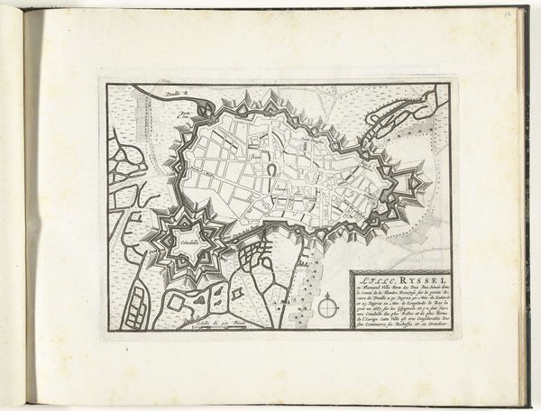 Curator: This print, “Plattegrond van Sint-Winoksbergen, ca. 1702,” offers a bird’s-eye view of the city in exquisite detail. Rendered in engraving, it’s a remarkable artifact from the early 18th century, held in the collection of the Rijksmuseum. Editor: My first impression is how orderly and regimented it seems. The city's fortifications sprawl in a very geometric way—almost like a carefully constructed spiderweb designed to trap intruders. Curator: Indeed. The baroque period was fascinated by order and control, particularly in the military sphere. City maps like this were crucial tools. Editor: I'm also struck by how the city is presented—it feels so detached, almost bloodless. There are no people depicted, which turns it into this abstracted symbol of power and dominion. Curator: These maps served not just as guides, but also as powerful statements about the authority controlling the territory. Saint-Winoksbergen, like other cities, had strategic and economic importance. This plattegrond asserts possession and surveillance. Editor: And this relates to power dynamics—who gets to be on the map and who gets left out, who holds authority and whose lives are subject to its imposition. The lack of people underscores their marginalization within this representation of the city as an entity primarily for trade and defense. It also brings into view what a city looked like before industrialization truly took hold and the population surged. Curator: It reminds us that even something as seemingly objective as a map is deeply intertwined with politics and social control. The very act of mapping, then, is a project. Editor: Yes! This isn’t simply a depiction of physical space. It's a statement of the times and a reflection on the lives of the people—both within and beyond its fortified boundaries. The engraving preserves an ideology, in addition to preserving a physical likeness. Curator: Absolutely. It’s a chance for us to ask questions about the construction of power, and how the very presentation of a space can reflect societal biases and historical realities. Editor: Considering these issues helps us not just understand this map but maps generally—and the reality around us that is shaped by these representational and documentary processes.