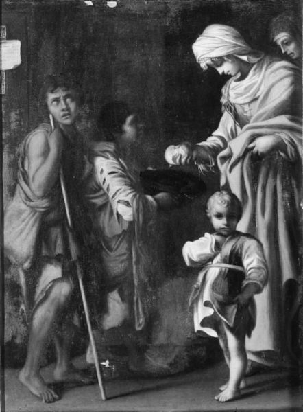 Johann Caspar Lavater created this oil on canvas painting, Hercules and Alcestis, sometime in the late 18th century. Lavater, a Swiss pastor and physiognomist, was fascinated by the relationship between outward appearance and inner character. Set against a classical landscape, the painting depicts a scene from Greek mythology, where Hercules restores Alcestis to her husband Admetus after she sacrificed herself for him. The emotional heart of this painting lies in the figures of Alcestis and Admetus. Consider the gendered dimensions of sacrifice and heroism embodied here. The image asks us to reflect on the social expectations placed on women. Alcestis, draped in white, embodies a kind of tragic nobility in her self-sacrifice while Hercules represents the active, masculine, heroic ideal. The cupid at their feet feels both incidental and representative of the stakes, the family. Ultimately, Lavater's painting isn't just a retelling of myth; it's an exploration of the human condition through the lens of classical ideals, inviting us to contemplate the complexities of love, duty, and the burdens of identity.