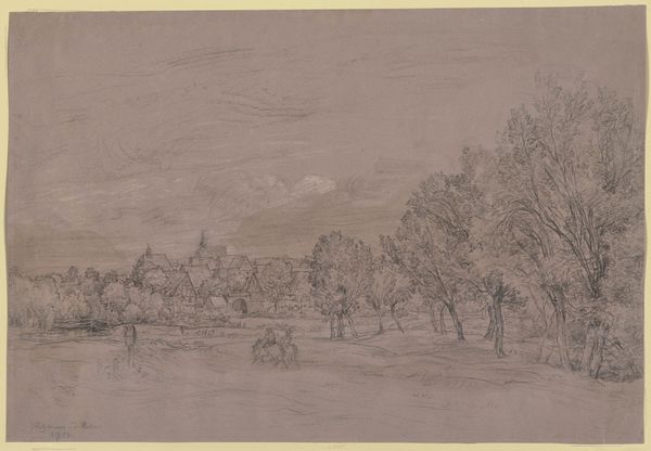 Louis Eysen created this study of chestnut trees near Schönberg in the Taunus, using graphite on paper. The initial impression is one of structured wilderness, where individual trees are discernible, yet massed into a unified grove. Eysen masterfully uses line and tone to define form. Notice how the trees are not merely represented, but constructed through a careful accumulation of strokes, each contributing to a sense of volume and texture. This attention to the materiality of the trees—the rough bark, the dense foliage—invites a tactile response. The composition is organized around a central tree that anchors the scene, around which other elements are distributed. This arrangement is not arbitrary; it reflects a structured approach to capturing nature. While seemingly representational, Eysen's work explores the intrinsic qualities of the landscape. The drawing captures a moment in time. Ultimately, this work prompts us to consider how the formal qualities of a drawing can serve not only as a window onto the world, but as a site for the exploration of structure, form, and the interplay between the artist, medium, and subject.