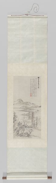 Curator: Just look at this delicate "Schildering," a painting rendered sometime between 1700 and 1750, attributed to Gao Qipei. The watercolor and ink application gives it such an ethereal quality. Editor: My immediate feeling is one of serene isolation. The subdued colors and misty atmosphere almost create a dreamscape. Is it my impression, or does the mountain pathway suggest a pilgrimage of some sort? Curator: Interestingly, Gao Qipei often incorporated symbolism rooted in Daoist ideals, using landscapes to represent humanity’s place within a vast universe, the pathway can lead towards enlightenment. What’s really fascinating is how artists during the Qing Dynasty had to navigate artistic expression under imperial rule. Court patronage demanded certain styles and themes, yet artists like Gao found ways to infuse personal philosophies. Editor: The visual motifs really support that. Mountains, often representing the axis mundi or the connection between heaven and earth. Note the delicate calligraphy—not just writing, but an art form laden with meaning. And the choice of watercolor and ink contributes to a mood of transient beauty. I see a parallel between the fleeting nature of the mist and the impermanence that underscores much Eastern philosophy. Curator: Indeed. And that's where the socio-political aspect becomes clearer. Painting provided an opportunity for literati artists like Gao to assert their cultural capital outside formal administrative roles, offering alternative visions of governance through metaphor. It wasn’t simply decorative; it was often a statement. Editor: The small scale draws the viewer in, compelling a focused, almost meditative observation. It prompts us to consider what's concealed, perhaps even more than what is revealed. It's a beautiful example of how much emotional weight simple scenes can carry. I’m noticing that each brush stroke feels intentional, almost weighted with intention, contributing to that introspective experience. Curator: The artist's ability to embed so much within such tranquil imagery speaks to the sophisticated cultural dialogue that painting enabled during this period. It’s also important to realize, its very existence is proof of cultural persistence, surviving eras of political change and still echoing its original sentiment today. Editor: Agreed. Reflecting on this, I see a powerful invitation here: a reminder of the enduring power of art to embody not just aesthetic beauty, but also deeply personal and collective experiences.