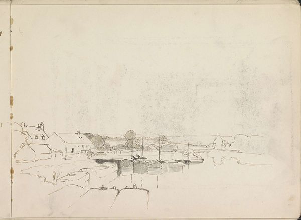 'View of Barcelona Port' is a drawing by Santiago Rusiñol, who lived from 1861 to 1931. Rusiñol was a key figure in the Catalan Modernism movement, deeply engaged with the cultural and political renaissance of Catalonia. This sketch, with its stark lines and muted tones, presents a view of labor and industry. The port, typically a site of commerce and connection, is rendered here with a sense of quiet desolation. It’s a scene that invites us to consider the workers whose lives were shaped by the rhythms of the port. The focus isn't on the grandeur of the sea, but on the structures that facilitate trade, and by extension, the lives intertwined with it. Rusiñol’s work often navigates the tensions between tradition and modernity, and this drawing is no exception. It’s an intimate, almost melancholic portrayal of a place undergoing constant transformation, a place where the dreams and realities of many converge.