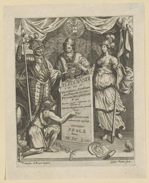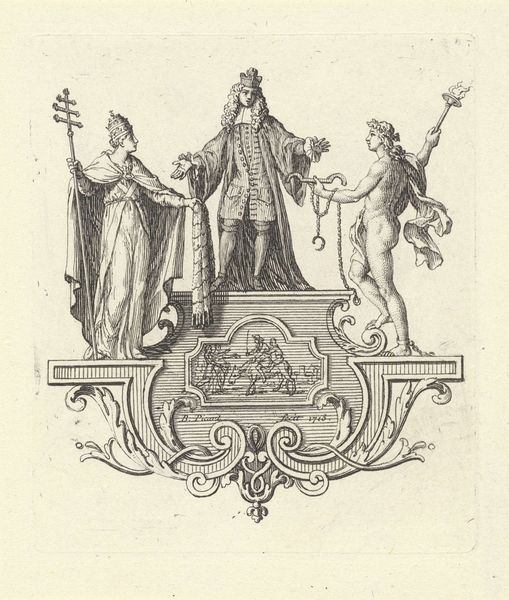 This is an engraving of Mathilde of Tuscany and Bonifacio III of Canossa by Johann Friedrich Schleuen. It's a work defined by clarity and order, its formal structure reinforcing the status of its subjects through distinct visual cues. The portrait’s composition is rigidly symmetrical; the profiles of Mathilde and Bonifacio are framed by matching oval cartouches. Note how Schleuen employs the lion head, a symbol of strength, strategically placed above the portraits, and the swag of fabric that lends a sense of depth. These elements are not merely decorative but serve to frame and elevate the subjects. The inscription below is a further structuring device, anchoring the portraits within a historical and intellectual context. The engraving’s linear precision, achieved through meticulous mark-making, enhances the clarity of forms. This precision, coupled with the calculated arrangement of elements, invites us to decode a hierarchy of signs that uphold the established order. Schleuen's engraving embodies a desire to present a structured world, reinforcing clear cultural codes.