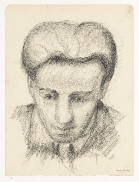 Cor van Teeseling made this self-portrait in pencil on paper in May 1942. You can see how the artist built up the image slowly, using lots of little strokes to create darker areas and shadows. It's a process of layering, each mark informing the next. The material quality of the paper plays a big part here, too. The tooth of the page is visible through the pencil, giving the drawing a soft, almost fuzzy texture. Notice the way the light catches the planes of his face, especially around his cheekbones and brow. The artist has used delicate shading to give depth and form, which is especially noticeable in the way he's rendered his hair. See how the individual strands catch the light? It's so tender and yet precise. Thinking about other artists, it reminds me a little of the intimate portrait drawings of David Hockney, where the focus is less on likeness and more on capturing a sense of presence and being in the world.