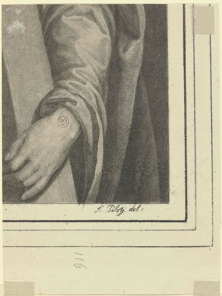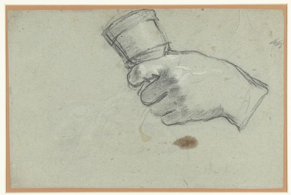 Curator: Welcome. We’re looking at a drawing called "Studie af en hånd," or "Study of a Hand," attributed to C.G. Pilo and dating from around 1711-1793. It’s rendered in ink and currently resides in the Statens Museum for Kunst. What are your first thoughts? Editor: It strikes me immediately as a symbol of control. The tight grip on that shaft, the unseen tension... it’s imbued with a certain suppressed power, or perhaps determination. Curator: That’s a fascinating read. For me, I'm drawn to the specific material choices. Ink, particularly during Pilo’s time, was an accessible yet precise medium, implying perhaps an economy of means, a focus on the practical training needed for academic art. Was this piece meant to be preparatory in nature, a simple skill excercise? Editor: It could very well be. The academic tradition valued anatomical studies for symbolic representation, so understanding musculature and tension was vital. Consider what this hand could represent, wielding power, authority or perhaps guidance, ready to punish. Curator: Absolutely. The way the fingers are articulated gives a sense of deliberate force and skill, something highly valued within artistic academies of that period. This could easily be someone building up to master portraits that rely on similar expressive gestures. Editor: Indeed, gestures speak volumes. But there's an ambiguity here too. The subject is gripping something, but that object itself has no identity in this drawing, and thus serves as something more psychological than practical. The hand as signifier is everything. Curator: That ambiguity is a result of the piece, perhaps deliberately, prioritizing technical proficiency. If the context for such work, however is located within artistic training—to demonstrate masterful control of light and shadow for expressive communication. Pilo would have had students create such works repeatedly. Editor: Still, what remains with me is that this is the hand of someone who will lead; perhaps someone mercilessly controlling; and capable to guide at will. Curator: An astute observation. Thinking about the art practices and what such studies mean within their respective spheres shifts how the piece reads quite a bit.