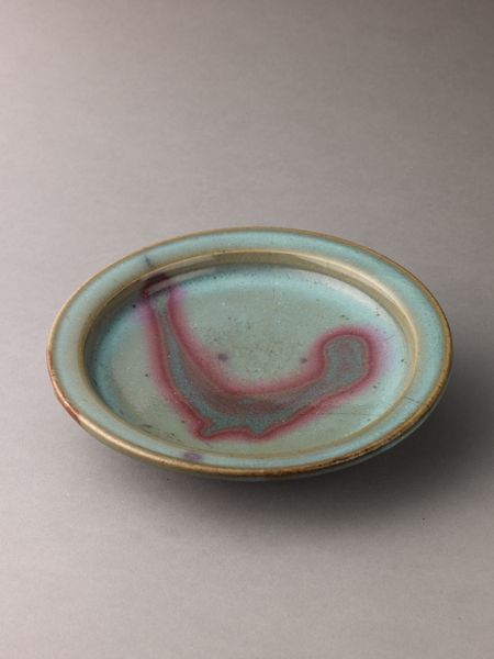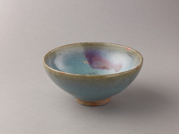 Editor: This is a Small bowl, a Jun ware made between 1200 and 1400. It's a ceramic earthenware piece, currently held at the Metropolitan Museum of Art. It's the glaze that really catches my eye, this dreamy blend of blues and purples… What do you make of it? Curator: Indeed, the chromatic interplay is quite striking. Note the distribution of color—the gradient from a saturated interior to a more subdued exterior. How do you interpret that transition? Editor: Maybe it's about containment, holding something precious within? The deep colours almost seem to vibrate. Curator: An astute observation. The vessel itself is simple, yet consider the surface—the thick, lustrous glaze, almost obscuring the earthenware beneath. What effect does this layering produce? Editor: It almost hides the materiality of the bowl itself, which is interesting, as you’d expect it to celebrate the physical form. Is the surface treatment perhaps suggesting a departure from function? Curator: Precisely. While utilitarian in form, the emphasis on surface and glaze elevates it beyond mere function. There is a clear visual language—a structural dichotomy—between form and surface. What might this tension suggest to you about its purpose? Editor: Perhaps its aesthetic value outweighs its practical purpose. It encourages us to think of this not just as a bowl, but as an artwork in its own right. Thank you, I see so many subtle nuances I missed before! Curator: You're most welcome. Remember, every form holds visual information, it is only the trained eye that can translate the true essence of beauty.