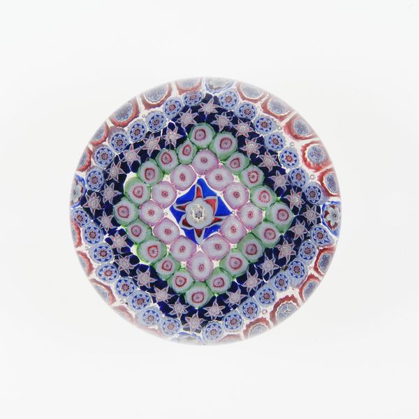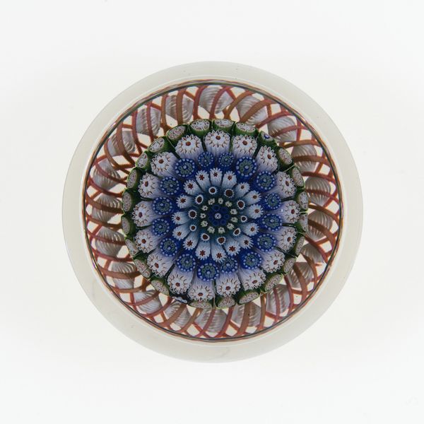 This glass paperweight, crafted by the Compagnie de Saint Louis, captures our gaze with its mesmerizing concentric patterns. The floral motifs, reminiscent of ancient mandalas, draw us into a world of symmetry and balance, reflecting a deep-seated human desire for order. The central rosette, with its radiating petals, echoes the sun—a universal symbol of life, energy, and spiritual awakening. This imagery is not new; it appears in ancient Egyptian art, Renaissance paintings, and even modern advertisements, each time adapted to fit new cultural contexts. Consider the rose, deeply embedded in our collective memory, from its use in religious iconography to its appearance as a symbol of love and beauty. This symbol has undergone transformations, adapting to fit each era’s needs and anxieties. Such imagery taps into our primal instincts, engaging viewers on a profound emotional level. The non-linear, cyclical progression of these symbols continues to evolve, resurfacing in new forms and contexts. It reminds us that these motifs are not static relics, but living entities that carry cultural memory and emotional resonance.