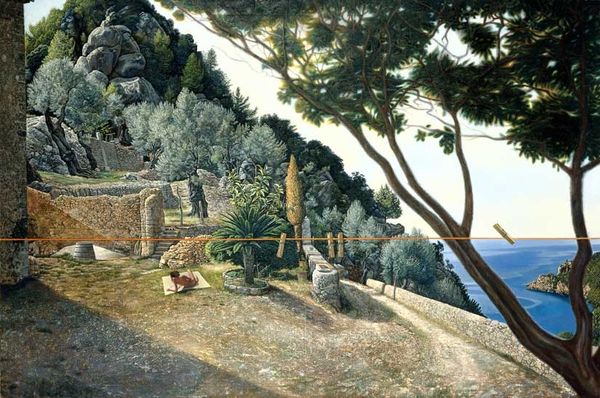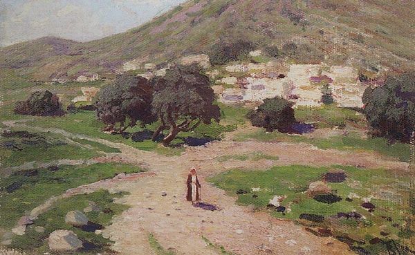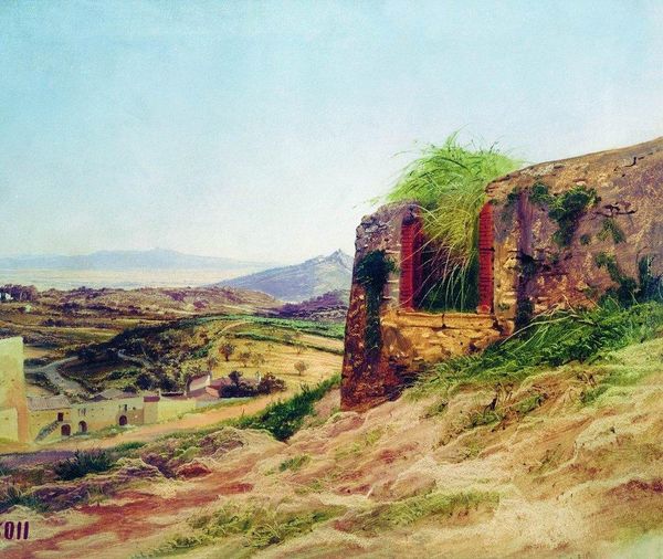 Lev Lagorio painted "Southern Landscape" with oil on canvas during the 19th century. You'll notice a rustic stone building nestled into a rocky hillside, capturing a sense of timeless rural life. Lagorio was part of a wave of Russian artists who found inspiration in the landscapes of Southern Europe, particularly Italy. This interest dovetailed with a broader trend in Russian society: the rise of national romanticism, which sought authentic cultural expression in the lives of ordinary people. At the time, the Imperial Academy of Arts was a significant cultural institution in Russia. Although it promoted Neoclassical styles, some professors encouraged students to look outside the establishment, towards more realist representations of everyday life. Paintings like this one offered viewers an escape from the rapidly industrializing cities and idealized a simpler, more "authentic" way of life. Art historians can investigate official records and private letters to find further evidence of artists' creative processes. By studying the historical and institutional contexts of art, we gain a deeper understanding of its meaning.
