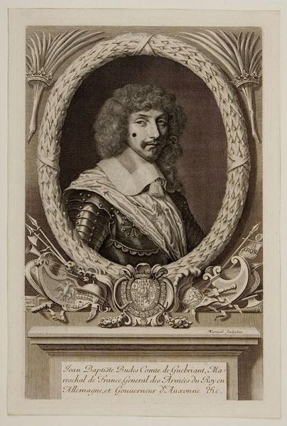 Robert Nanteuil's portrait of Jules-Paul de Lionne presents us with a man encased in symbols of power and prestige. The laurel wreath, a classical motif, frames Lionne, signifying his achievements and status, while weapons, including spears and cannons, are displayed, alluding to military strength. This symbol of the laurel wreath has ancient roots, winding back to the Greeks and Romans, who crowned victors and heroes with its leaves. Over time, its significance has permeated through the Renaissance, adorning portraits of rulers and intellectuals. Even today, in modern emblems and awards, we see the wreath's echo, a testament to its enduring appeal. The wreath becomes more than just a decoration. It acts as a potent, non-verbal communicator, tapping into our collective understanding of glory and triumph. Observe the armor. Its polished surface reflects not just light but also an era’s ideals of protection, honor, and martial prowess. Like the recurring image of a snake eating its tail, a symbol of the eternal return, this armor is both a relic of the past and a persistent reminder of the cyclical nature of power.