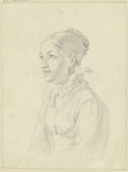 Editor: Here we have P.S. Krøyer’s etching on paper, "Portræt af Anna Ancher, profil," from 1898, at the Statens Museum for Kunst. It's a profile portrait in delicate lines; what strikes me is the artist's command of line to convey form. What do you see in this work? Curator: Initially, it's compelling to note the economy of Krøyer’s lines, the very essence of form captured. Observe how the artist utilizes hatching and cross-hatching— a concentration of lines to denote shadow and volume on the face and hair versus the open space delineating the planes of the subject's shoulder and bust. This contrast creates a focal point, immediately drawing our attention to Anna Ancher's profile. Editor: So, the way the lines are placed guides our eyes? Curator: Precisely. It’s also pertinent to observe the formal choices impacting our perception. The stark contrast between the lines and the negative space directs attention to the contours. We are led to consider not only the likeness but also the pure abstract shapes created by the marks on the paper. The composition is built around the play between these visual elements. Editor: It almost feels incomplete in some areas, especially around the dress. Was this intentional, or could it be because it is a study of sorts? Curator: Perhaps a demonstration of implied form? The artist offers minimal detail in those regions to keep one's focus primarily upon her face and neck. These editorial decisions speak to the formal relationship, I believe, between line and form and their capability to capture depth in the viewer's eye. The strategic employment of "less" is truly a hallmark. Editor: I see, a delicate balance between representation and abstraction through these very specific lines. Curator: Yes, reflecting upon our discussion, this portrait is compelling as the visual elements merge to become greater than the sum of the parts: the very essence of portraiture is illuminated by formalistic inquiry.