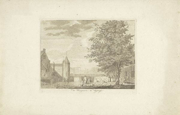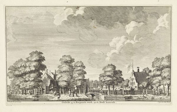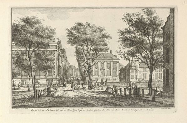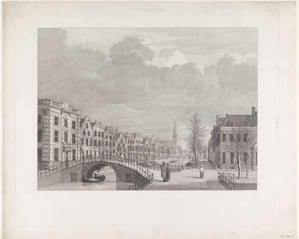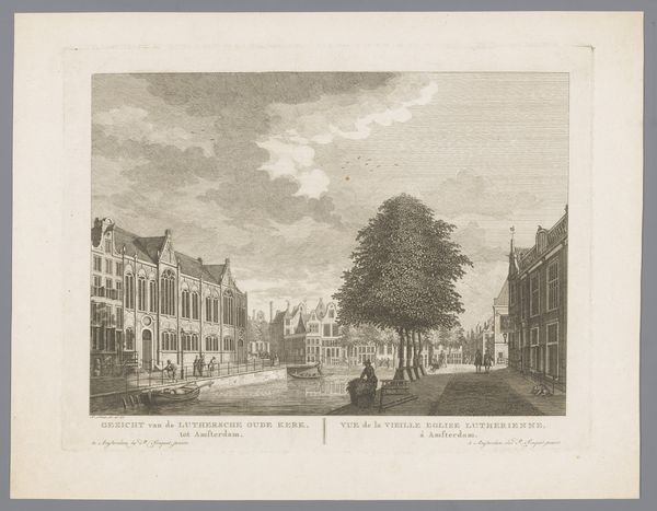 Curator: Welcome, everyone. Before us is "Gezicht op de Nieuwe Waalse Kerk (1685-1808) te Amsterdam," or "View of the New Walloon Church in Amsterdam." This print, by Hermanus Petrus Schouten, likely created between 1770 and 1805, offers a detailed cityscape rendered in the delicate art of engraving. Editor: Oh, wow, that's pretty. It gives me this calm, almost nostalgic feeling. All those tiny lines make it look like a hazy memory, you know? Like I’m looking at Amsterdam through a rainy window. Curator: Indeed. The work offers insight into the social and religious landscapes of 18th-century Amsterdam. The Walloon Church, of course, was significant to the city's French-speaking Protestant community, who sought refuge in Amsterdam. Its presence speaks to Amsterdam's role as a haven. Consider how the buildings flank the church... Editor: But the funny thing is, the church itself almost fades into the background. My eye is drawn more to the daily life happening around it, those figures milling about. It’s like the artist is saying the everyday is just as sacred. Or maybe, I don't know, maybe that's too much projection! Curator: Not at all. The interplay between the mundane and the monumental is a key feature. The presence of canals tells the story about Amsterdam's economic and social history, too. And it is important to acknowledge that prints were relatively accessible… How did this availability of images shape broader audiences understanding their relationship to power and the place they inhabit? Editor: Yeah, there's something super democratic about a print, right? Making art accessible. It’s like sharing a collective memory, this version of Amsterdam that anyone could hang in their home. Makes you think about who gets to tell the stories, doesn’t it? Curator: Precisely. Schouten’s print contributes to a visual archive, influencing perspectives on Amsterdam and Dutch identity itself. Editor: Well, now I’m seeing this quiet revolution happening in ink and paper. Thanks for opening my eyes to that! Curator: It's been my pleasure. Let's carry these perspectives with us, as we continue to examine how art shapes our world.