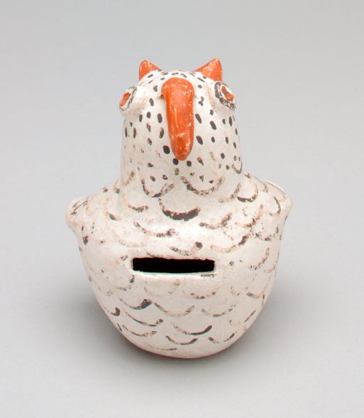This owl still bank was crafted by an A'shiwi (Zuni) artist, using clay. Look at the way the artist uses repeated marks to create the owl’s feathers! The consistency and scale of each mark suggests a kind of rhythmic, almost meditative process. The texture is matte and earthy, with a muted palette dominated by creams and browns. The painted marks are applied with a steady hand, creating a pattern that covers the owl's plump body. There is a small opening for coins. I love how the artist rendered the eyes, a bright, intense orange against the softer hues of the body. This piece reminds me of the work of Rosemarie Trockel, who is also interested in serial mark making and the tension between control and chance. Art is always such a great conversation! The owl embodies so many ideas, about nature, about culture, about saving, and about seeing.