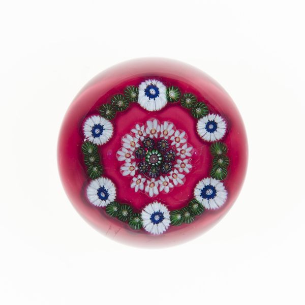 This paperweight was made by the Clichy Glasshouse in France in the 19th century. Encased in glass are delicate floral motifs. The rose at the heart, encircled by smaller blossoms, evokes ancient symbols of love, beauty, and renewal. Consider Botticelli's "Primavera," where Flora scatters flowers, embodying spring's rebirth. The act of placing flowers in glass transforms them into an emblem of preservation. These motifs echo across centuries, a visual language of nature's enduring allure. Like Freud explored the interpretation of dreams, so too do these floral patterns trigger primal memories and universal experiences. Such imagery connects us to shared human emotions, hinting at our longing for eternal beauty. They are powerful forces, engaging us on a deep, subconscious level. These symbols resurface, evolving, and taking on new meanings in different historical contexts, and offer an insight into the cyclical progression of nature and our engagement with it.