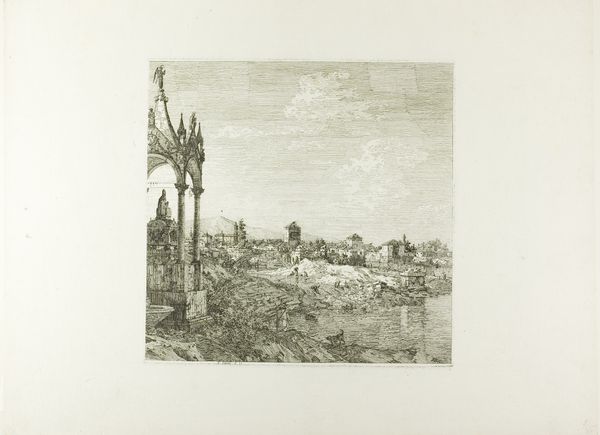 This is "Palme ved havet", or "Palm Tree by the Sea" by J.A. Jerichau, made sometime between 1890 and 1916. It's an etching, so we see the world through a network of tightly woven lines. The whole image feels like a quick sketch, not labored over, but full of immediacy. The surface is alive with these scratches, like a swarm of tiny thoughts made visible. Look at the cross-hatching in the palm fronds and how it creates a sense of depth and shadow. There's a rawness to the mark-making, an honesty about the process. It makes me think of outsider art, or maybe even some of Cy Twombly's more gestural drawings. The beauty of art is that it's never really finished. It's always in conversation with other works, other artists, and our own ever-changing interpretations.