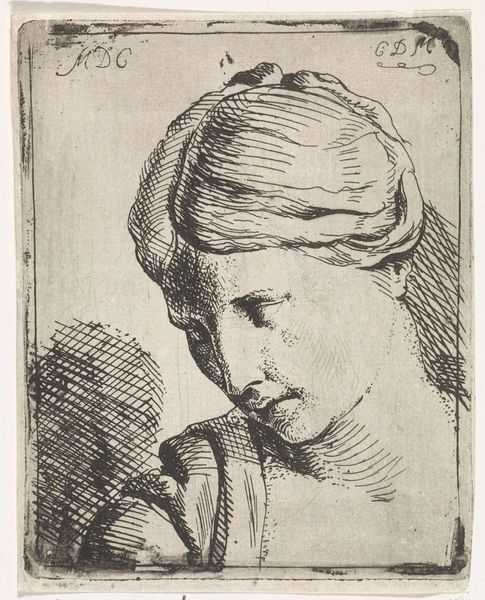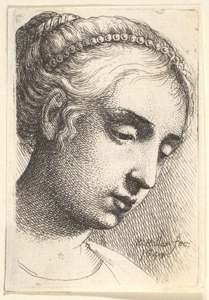 This is Wenceslaus Hollar’s etching, featuring a boy's head and two male profiles. Observe the youthful figure at the top, eyes closed, seemingly in repose. This motif of closed eyes carries a rich history, from classical sculptures of sleeping gods to Renaissance depictions of idealized beauty in eternal slumber. It echoes through time, appearing even in modern photography, each instance tapping into our collective memory of peace, vulnerability, and the introspective dream state. The act of portraying a face in profile, as seen in the two figures below, harkens back to ancient coins and portrait busts, where the profile was a symbol of power and identity. Yet, in Hollar's sketch, the profiles are softer, more human. They invite us to consider the psychological depth behind the external image, perhaps reflecting the inner thoughts and emotions of the subjects. These simple studies of human features evoke a powerful connection across centuries, reminding us of the enduring human quest to capture and understand ourselves.