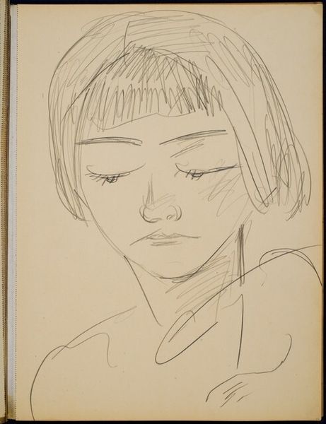 Curator: This is "Japanse vrouw," or "Japanese Woman," a pencil drawing by Reijer Stolk, created around 1916. It resides here in the Rijksmuseum. What strikes you about it? Editor: Immediately, its stillness. The subject seems introspective, focused on the unseen text or object in her hands. The minimal lines contribute to a sense of quiet contemplation. Curator: I see that stillness as a reflection of the period. Early 20th century art was wrestling with identity amidst rapid industrial and social change. The choice of a Japanese subject is itself interesting. "Japonisme" was a major influence on Western art, but this rendering feels distinct. Editor: Indeed, it lacks the overt exoticism common in earlier "Japonisme." Stolk seems to be exploring form rather than cultural tropes. The curve of her head, the simplification of her features – it’s almost sculptural in its reduction. Curator: But what does it mean to represent a woman of Japanese descent through this simplified lens? Is Stolk subverting Orientalist expectations, or reinforcing a kind of essentialized "Japanese" identity? Her downcast gaze adds to the mystery; it becomes more about projecting interpretations on the ‘other’ than portraying real subjectivity. Editor: I think the ambiguity is key. Her face, while minimally rendered, suggests an internal world we cannot fully access. Semiotically speaking, the closed eyes serve as a void onto which viewers can cast their interpretations and thus actively complete the artwork through observation. Curator: And the context of the First World War looming? The woman becomes an icon of peace and introspection in the face of unprecedented violence, albeit filtered through the artist's gaze. A complex intersection, I believe, between aesthetic formalism and sociopolitical undertones. Editor: Yes, it’s in this interplay, that the drawing truly gains momentum. A potent moment of visual quiet, yet bursting with complexities that make one think twice. Curator: An encounter I feel we have only begun to understand more profoundly.
