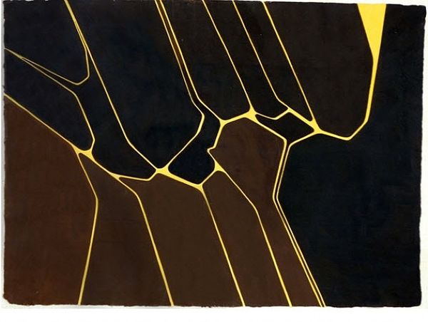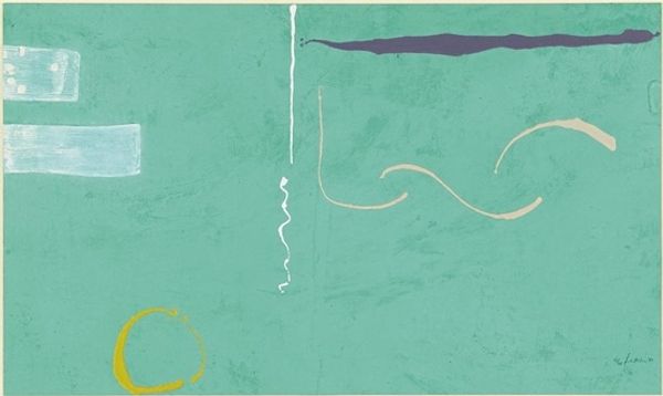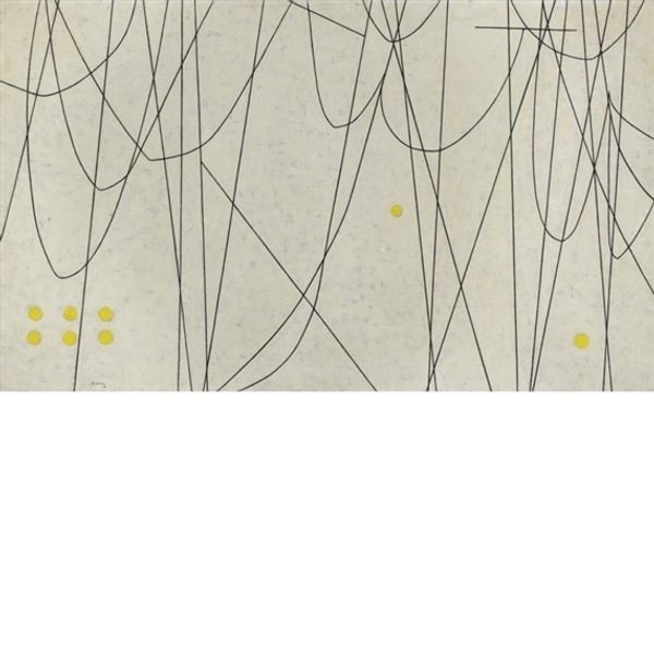 O. Louis Guglielmi’s ‘Circus in Yellow’ is, as far as I can tell, undated, but it's made with that humble yet daring combo of ink and crayon. The yellow feels like a stage, doesn't it? A bit faded, but still holding the spotlight. Look closely, and you'll notice it's not just a flat wash, but a field of tiny squares of crayon. It’s like a subtle buzz beneath the surface of the image. Then you have these looping lines, the ink swooping and diving like trapeze artists in mid-air. I'm drawn to the way these lines don’t quite connect. They suggest shapes, spaces, but never fully define them. It makes me think about the incompleteness of any gesture, how every mark leaves something unsaid. Like some kind of strange set design for a Beckett play! This piece reminds me of the work of Forrest Bess, where the inner life is made visible with humble means. For me, art is always asking questions, rarely giving answers.