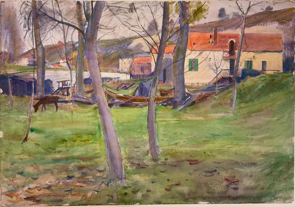Editor: This is Denman Waldo Ross's "Bettys-y-Coed, Wales." It's a watercolor piece with a quaint cottage nestled in the landscape. What can you tell me about the materials and context? Curator: The watercolor medium speaks volumes. Its accessibility democratized landscape painting. Consider the availability of pigments, the paper source, and the intended audience. Was this for personal study, or mass consumption? Editor: That's fascinating. I hadn't thought about the implications of watercolor itself. I guess it makes me consider the artist's accessibility too. Curator: Exactly. Ross's choice reflects a shift in artistic production and consumption, moving away from solely elite patronage. It invites us to reconsider the value placed on different forms of labor. Editor: I'll definitely look at materials differently now. Thanks! Curator: It's all about understanding the conditions of artistic production, shaping what we see.
