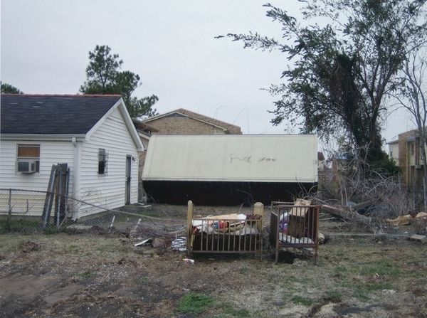 Richard Misrach captured this photograph of New Orleans and the Gulf Coast in 2005. It acts as both document and commentary. The image resonates with the lived experiences of those most affected by Hurricane Katrina. Misrach doesn’t shy away from showing us the blunt truth of the ravaged landscape. We see homes torn apart, belongings strewn about, and a crude expression of anger spray-painted on a wall. These are visceral signs of devastation and displacement. The emotional rawness becomes an indictment of the systemic failures. The vulnerable communities left unprotected highlight the intersection of race, class, and environmental injustice. This photograph confronts us with the raw, unfiltered emotions of a community left behind. It serves as a reminder of the human cost of natural disasters and the social inequities they expose.
