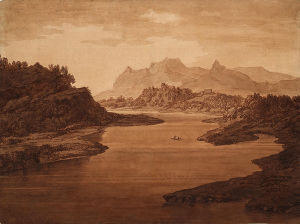 Théodore Gudin captured this view of the Rhine in a subtle wash of browns, evoking a scene shrouded in mist and history. The Rhine itself, coursing through the heart of Europe, bears the weight of centuries, a symbol of borders, trade, and the romantic yearning for nature. Think of the Lorelei, the siren perched on the cliffs, luring sailors to their doom – a potent symbol of nature's allure and peril, echoed in the misty, undefined forms here. The single sailing ship, a motif that recurs throughout art history, represents both journey and vulnerability, a small vessel against the vastness of nature. Consider how the mountain motifs have evolved; from ancient cults to the Romantic sublime, mountains embody a connection to the divine, a place where the earthly meets the celestial. This is a powerful image that engages us on a deep, subconscious level. The Rhine and the sailing ship, symbols that reappear throughout art history, constantly evolving and reminding us of our collective memories and the enduring power of nature's allure.