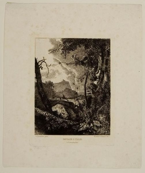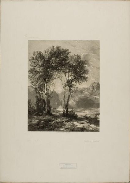 Editor: This is "Ruins of the Chateau of Tancarville" by Alfred Louis Brunet-Debaines. It's a rather melancholic scene, enveloped in shadow. What's your interpretation of this ruined castle nestled within the trees? Curator: It whispers of time's relentless march, doesn't it? I feel the quiet drama of decay. The oval frame is like a fleeting memory, and the ruin itself, a reminder that even grandest structures return to the earth. Editor: It feels so remote. Curator: Indeed. Do you think the artist saw beauty in the breakdown, or a warning? Perhaps a little of both. There's a strange comfort in knowing even our mightiest creations will eventually soften back into nature. Editor: That's beautiful, a comforting truth.