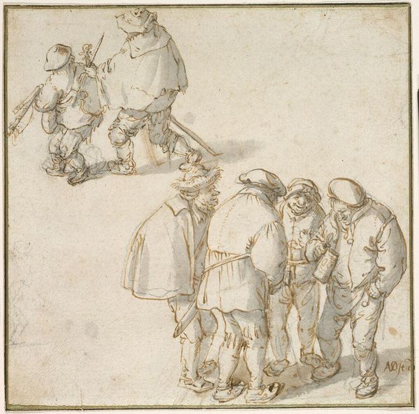 Gerard ter Borch II made this pen and brown ink drawing, "Five Men Pulling a Heavy Object from a Cellar," sometime in the 17th century. At first glance, it’s a simple scene of labor, but the context of the Dutch Golden Age, when the Netherlands experienced unprecedented economic and cultural growth, complicates it. Was ter Borch commenting on the social structures of his time? The etching depicts a menial labor task and evokes questions of commerce and class. The Dutch Republic was one of the first capitalist economies. Art became a commodity and its institutions helped to shape and were shaped by these new economic realities. The Rijksmuseum, where this work is housed, is itself an institution whose history reflects changing attitudes towards Dutch art and national identity. Understanding the social conditions of artistic production requires attention to economic structures, class relations, and institutional histories. Exploring these can reveal how artists, like ter Borch, engaged with the world around them.