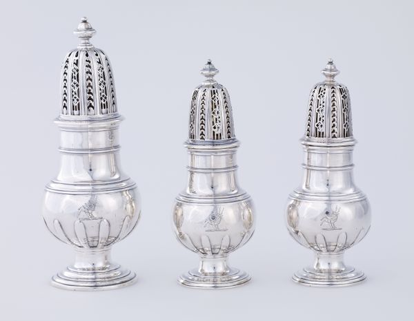 Editor: Here we have a pair of casters, crafted from silver by Joseph Ward between 1700 and 1701. They're really quite small and intricate; I find myself wondering, what do these objects whisper about the era they come from? Curator: Ah, "whisper" is the perfect word. Silver, especially during the Baroque era, wasn’t just a material, it was a potent signifier. The repetitive, almost floral piercings create a rhythm, don't you think? Almost musical, echoing the elaborate court life. Editor: Definitely a visual rhythm. I wonder about the owners – were they trying to say something about themselves? Curator: Undoubtedly! Owning such fine objects displayed wealth, taste, and belonging to a certain social stratum. The casters themselves would have held powdered spices - highly valued commodities. Notice how the silver reflects light? Editor: Yes, they seem almost luminous. Does the shape itself carry a significance? Curator: Precisely! The bell-like shape of the pierced top recalls ecclesiastical forms, suggesting a kind of sacredness afforded to dining and domestic rituals. Food wasn't merely sustenance, it was performance. Think about the symbolic weight of salt or sugar during this time – flavors that could transform not only the dish but also social standing. Editor: So these objects, while seemingly simple, speak to a larger cultural narrative. It is kind of interesting to consider this an image from the 18th century through a cultural memory from decorative objects! Curator: Precisely, and even now they retain their original charm and function. Each intricate detail reveals an object whose historical roots have the power to evoke the social, cultural, and spiritual atmosphere of its own time and our present moment.