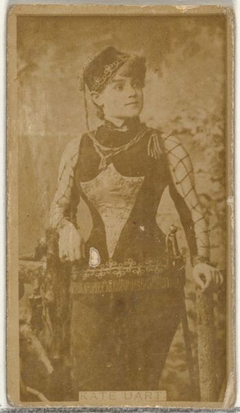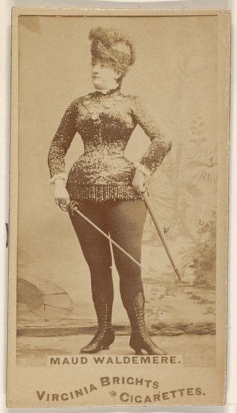 This photograph of Maud Waldemere comes from a series of actress portraits printed by the Kinney Brothers Tobacco Company as promotional material for Sweet Caporal Cigarettes. These kinds of promotional items were popular in America during the late 19th century. The image presents Waldemere in costume. She is wearing a tight bodice, leggings and a short skirt. The backdrop is a painted tropical scene, which may or may not relate to the play she's performing. The purpose of the image is to glamorize the actress, and by extension, the cigarette brand. It suggests a world of leisure, entertainment, and perhaps a hint of exoticism. The image is a reminder of the close relationship between the culture industry and the world of commerce. To understand the public role of art at any given moment, it is important to look at the economic structures that support its production and distribution. Things like advertisements, playbills, popular press, and archival photos can all help us to understand these social and institutional contexts.