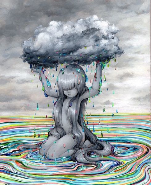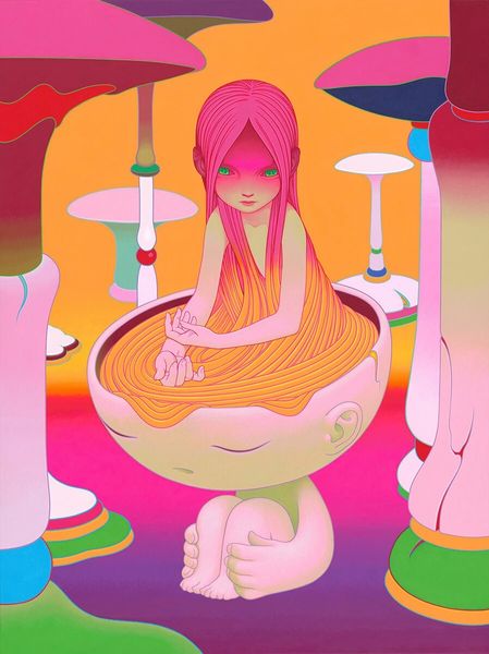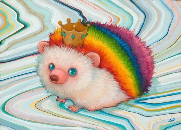 Camilla d'Errico made this, I'm guessing in the twenty-first century, Sunny Side Up, with what looks like colored pencils or maybe thin paint. The surface is super smooth and precise, not thick at all. You can almost feel the waxy texture of the colors. D'Errico really takes her time, layering the colors in a way that feels almost meditative. Look at the background: it’s like she’s creating a whole world with each little stroke. I love how the rainbow spills out of the egg yolk. It reminds me of the kind of surprising color combinations you see in Lisa Frank’s work, but with a softer, more surreal vibe. This kind of image-making reminds me that art doesn’t always have to shout to be heard. Sometimes, it's the quiet, meticulous gestures that speak the loudest.