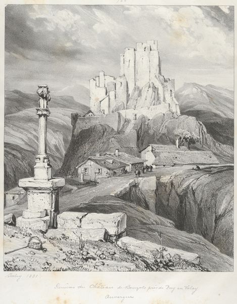 Eugène Isabey's print of the Exterior Apse of the Church of Saint-Nectaire presents us with a study in contrasts, rendered in shades of grey. The rough, organic forms of the landscape cascade down to the village, while the man-made church sits above, composed of geometric shapes with precise lines. Isabey plays with light and shadow, guiding our eye across the image. The dark foreground gives way to the light-struck church, a beacon on the hill. The architecture invites a semiotic reading of the visual components. The church, a symbol of order and divine authority, contrasts with the rustic village, a sign of humanity and nature. This contrast destabilizes any fixed meaning. Consider how Isabey has constructed not just a landscape but a dialogue between nature and culture, faith and daily life. This tension, captured so elegantly through the interplay of line and form, remains a potent visual statement.