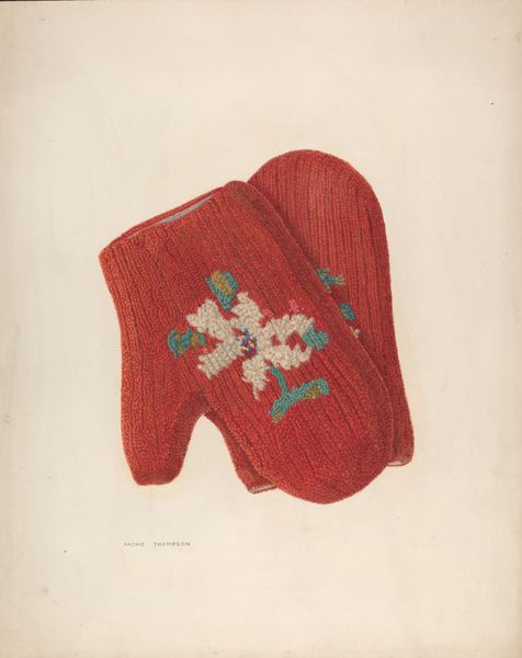 Editor: This is Harry Mann Waddell’s "Side Saddle - California Style" from around 1937, a drawing using colored pencils and watercolor. It’s surprisingly delicate for a piece depicting something so rugged. What's your take? Curator: Delicate indeed! The floral pattern almost softens the industrial form, like finding wildflowers growing out of machinery. There’s a strange beauty there, a tension between practicality and decoration. Do you notice how precisely he renders the textures? It’s as though he's cataloging every stitch, every curve. Editor: I see what you mean. It’s like he’s both documenting it and also…idealizing it? The flowers definitely weren’t on every saddle! Curator: Exactly! It reflects the romanticized vision of the American West popular in that era, right? Artists, authors, filmmakers… they all helped build the myth. This saddle, so meticulously rendered, becomes part of that fantasy. Did California saddles really look like this? Editor: Probably not all of them! This makes me think about how much of our vision of history comes from constructed images. I initially just saw a pretty saddle. Curator: And isn't that the best kind of art? The art that makes you reconsider a single object and its impact on our society. The West's romantic view becomes a challenge on its traditional conventions! Editor: I guess so! This was super interesting and useful! Curator: The pleasure was all mine! It's been such a colorful insight!