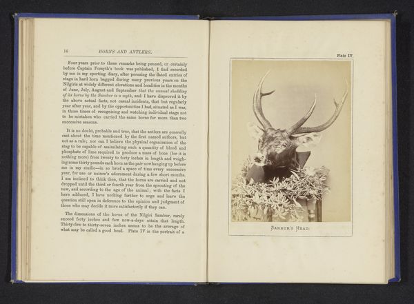 Editor: Here we have a gelatin-silver print titled "Opgezette kop van een bizon," or "Stuffed Head of a Bison," created sometime before 1880, credited to Nicholas & Co. and held at the Rijksmuseum. It’s… unsettling. There’s a certain raw starkness to it. What strikes you most about this work? Curator: What immediately catches my attention is the means of production – gelatin-silver print, a chemical process. The use of photography at this time was often about documentation, aligning with scientific or even colonial ambitions. Consider the material cost involved, the silver used, and the labor in producing a seemingly simple image. Were these images circulated widely, and if so, to what social strata? The act of photographing a ‘stuffed head’ itself denotes a transaction—commodification perhaps. What purpose did this object serve? Editor: That's an interesting point – it’s like the animal becomes an artifact through this photographic process. Almost a pre-cursor to wildlife photography or studies. Was the photograph intended to have a scientific or artistic purpose, or simply to commemorate the hunt? Curator: Those classifications, scientific or artistic, become blurry when examining material practice. Think of the labour of taxidermy too, fixing a once-living thing into an object of study, a symbol of human mastery. Photography extended that reach, providing repeatable documentation. Editor: So you’re saying we can read it not just as a portrait of a bison, but a portrait of a relationship between humans and the natural world. Curator: Precisely. By focusing on the materials and the mode of production, the layers of meaning become richer. What does mass producing these sorts of photographs and prints mean? Was it a popular trend? What does the access, or lack thereof, to this media tell us about a changing culture at the time? Editor: I hadn’t considered how deeply embedded it was in practices of labor and resource extraction. Looking at it now, it speaks volumes about consumption and control. Thanks, I will think about this a lot more now. Curator: Likewise, the layers here offer fresh perspectives each time.