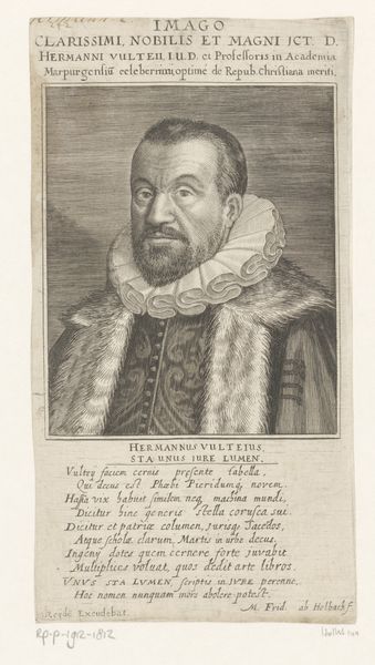Curator: Here we have Antoine de Marcenay de Ghuy's 1755 engraving, "Portret van Jacopo Tintoretto." The Baroque piece captures Tintoretto, the celebrated Venetian painter. Editor: The density of the lines creating light and shadow give it a rather solemn air, don’t you think? Almost as if we're catching him in a moment of deep contemplation. Curator: Absolutely. Marcenay de Ghuy's mastery is apparent in the meticulous cross-hatching, building tonal depth with impressive skill. Consider how the varied density creates a focal point at his face. Editor: The hands also draw the eye. The gesture, coupled with the book and object at the lower left, might allude to his scholarly inclinations or achievements beyond painting. Do we know more about those elements? Curator: Such props were often deployed in portraiture of the time to signal intellectual or professional status, placing Tintoretto firmly within a lineage of artistic genius. The engraving renders them meticulously. Notice the play of light on his garments; their textural intricacies almost defy the limitations of the print medium. Editor: Looking at his robe I note a continuity of form. The rounded contour against the white collar which offers the strongest contrast in the work seems almost monastic. What do you see reflected there? Curator: It creates a visual anchor. But within that seemingly simple form, the artist generates an incredible range of tonal variation. Also, if we note the dimensions it allows for it to have great physical presence despite being made of simple materials. It shows an amazing talent with rendering space in the Baroque style with what he had. Editor: It makes one wonder about the original painting from which this engraving was drawn, and what additional layers of meaning were lost, or perhaps even amplified, in translation to print. Curator: It offers us a study in graphic precision. And yes, tracing the journey from the original artwork to this engraved iteration opens a rich path for analysis and appreciating it as more than just a copy. Editor: So, a fascinating echo of an echo, filled with its own silent resonances. Curator: Precisely, a testament to both Tintoretto’s legacy and Marcenay de Ghuy's artistry in capturing its essence.