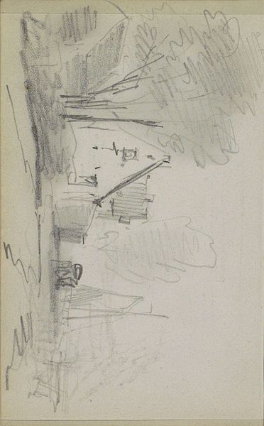Editor: Here we have "Zeilboot op een rivier" – "Sailboat on a River" – a pencil drawing on paper by Jozef Israëls, created sometime between 1834 and 1911. It feels incredibly spontaneous, like a fleeting observation. What do you see in this piece, looking beyond its sketch-like quality? Curator: Ah, a sketch. For me, sketches are like whispers from the artist's mind. I'm instantly drawn to that mast, fighting for dominance against a gentle implied landscape. The imprecision, the suggestion…it speaks to a pursuit of capturing a mood rather than a strict depiction of reality. The Dutch light feels trapped there too, don’t you think? That ethereal luminescence that dances on the water, rendered only with subtle shades of graphite. Makes you feel as though it’s all in flux. Editor: I do. It’s like he was trying to catch a memory before it faded away completely. So, is it that sense of immediacy what places it within the Impressionist movement? Curator: In part, certainly. But beyond that immediacy, there's also that conscious decision to embrace subjectivity, that a landscape, like any other subject, could be approached less as a record and more as a projection of the self. There’s something quite poetic in that idea. Almost as if the sailboat and river are just reflections of his own internal journey. Do you feel it too? Editor: Definitely. Seeing it that way transforms the sketch into something far more personal and evocative. I had initially dismissed it because it was only a drawing! Curator: And isn't that the marvelous paradox of art? What appears simple on the surface can often hold universes within, waiting to be discovered, like buried treasure. Editor: It’s all a matter of looking closer then! Thank you, that was enlightening!