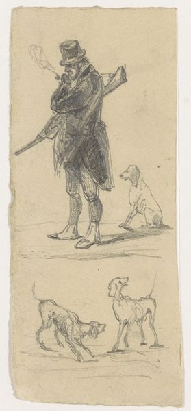 Georg Melchior Kraus created this pencil drawing titled Zwei Bauern in Rückenansicht – or Two Peasants from the Back - in the late 18th century. The Age of Enlightenment was dawning in Europe. Kraus's work invites us to consider the lives of those often overlooked in art history: the working class. Look closely. What do you notice about their posture? Their clothing? The tools they carry? Kraus captures a sense of their dignity, even as they are presented from behind, anonymous and turned away from the viewer. The deliberate choice to depict these figures suggests a growing awareness and perhaps an idealization of the common person. It is worth asking, is this portrayal an act of empathy, or does it participate in the construction of the ‘rustic peasant’ as a counterpoint to the refined aristocracy? It’s these kinds of questions that help us engage with the social narratives embedded in art. This drawing offers a glimpse into a changing world, where the value and visibility of everyday people were slowly beginning to emerge in artistic representation.