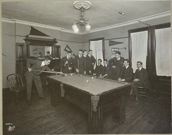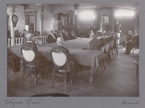 Curator: This photograph, taken by Apeda Studio, captures a meeting of the "House Senate" at the Hebrew Sheltering Guardian Society Orphan Asylum in Pleasantville, New York. Editor: The image has an air of seriousness, doesn't it? Like a group portrait attempting to capture something more profound than just faces around a table. Curator: Indeed. The photo offers a window into the self-governance model adopted by the orphanage, a concept rooted in progressive social reform of the time. It really shows the period's faith in young people. Editor: It’s fascinating to see how notions of citizenship and social responsibility were instilled in these children, especially considering the historical context of immigration and assimilation. Curator: I wonder what it felt like to be one of them. I bet there was at least one rebel in the group, stirring things up. I know I would have been. Editor: Perhaps that rebel is precisely who they were trying to educate out of existence? Curator: That's a point. This photo captures a specific moment, a controlled narrative of progress, but the untold stories of these children resonate far beyond. Editor: Absolutely. It reminds us to question the images presented to us, and to seek the complex realities beneath the surface.