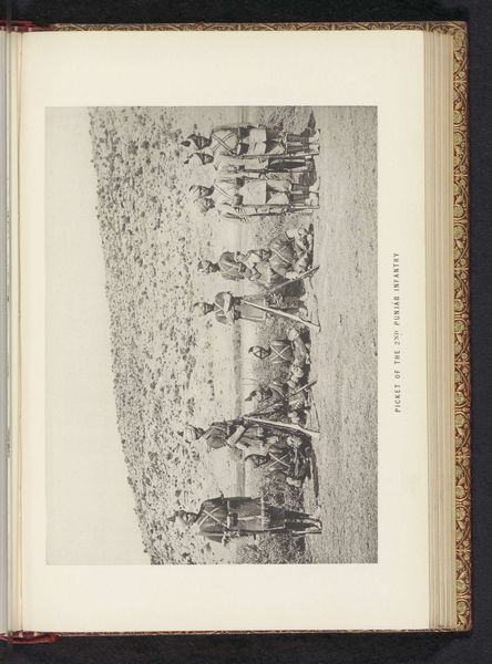 This photograph, "Peace or war? Jirga of Massuzai Orukzai," by Frederick Saint John Gore captures a moment laden with tension. Notice how the composition divides the scene horizontally: the lower half is dominated by figures gathered near a tent, while the upper half features a stark, open landscape punctuated by distant mountains. The photograph's formal structure invites a reading where elements of potential conflict and resolution coexist. See the rifles held by the figures – vertical lines that introduce a sense of unease and stand in contrast to the seated postures of the men, which suggest deliberation and potential agreement. The tent serves as a focal point. It is a space for negotiation, literally framing discussions of peace and war. The photograph, with its careful balance of opposing elements, presents a semiotic challenge. The arrangement of figures and objects creates a visual discourse on the precarious balance between conflict and resolution. The open-ended title acknowledges that the meaning remains unresolved, leaving us to contemplate the uncertain outcome of this tribal assembly.