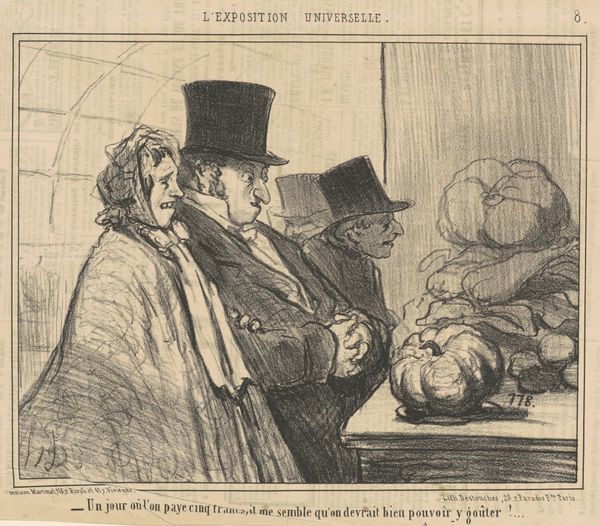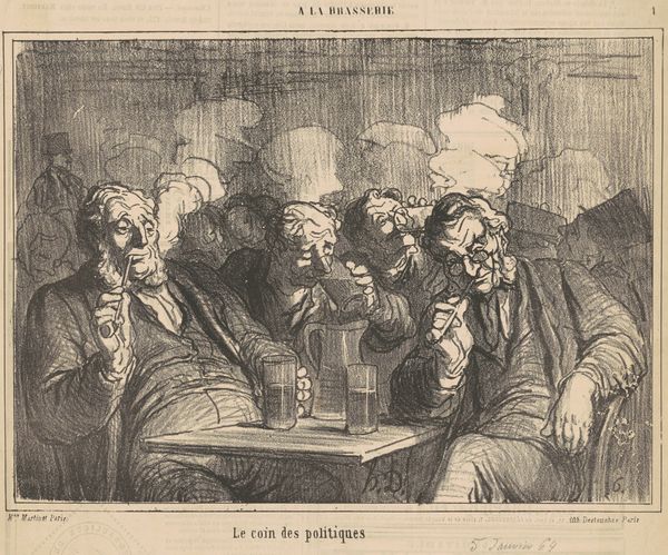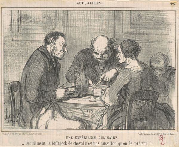 This lithograph was made by Honoré Daumier, though it's difficult to say exactly when. Lithography is a printmaking process that relies on the chemical repulsion of oil and water. In this case, Daumier would have drawn an image on a flat stone with a greasy crayon, and then treated the stone so that ink would adhere only to the drawn areas. The resulting print, as you can see, has a direct, sketch-like quality. Daumier was a master of this technique, using it to create satirical commentary on French society. Here, a group of self-important scientists proposes experimenting with new food substances, including what appears to be rats and frogs! The immediacy of lithography allowed Daumier to quickly respond to current events and social trends. The process itself, relatively inexpensive and reproducible, was perfectly suited to mass dissemination, making his work accessible to a wide audience. Consider the labor involved. From the quarrying of the stone, to the preparation of the drawing surface, to the printing process itself, lithography was a collaborative effort. The final print is a testament to the skill of both the artist and the printer.