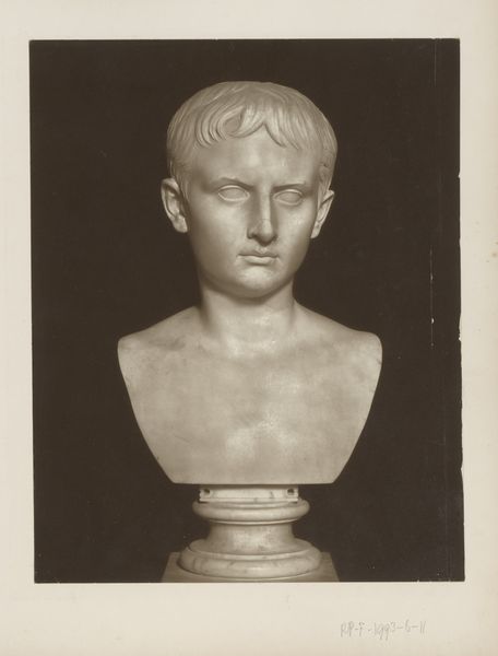 Editor: Here we have "Studie naar een gipskop", or "Study of a Plaster Head," by Jan Veth, made sometime between 1874 and 1925. It's rendered in charcoal, graphite, and pencil. It's hard to tell if this head is meant to be any historical figure in particular. It definitely has this classical feel, though... kind of solemn. What do you see in this piece? Curator: You know, it whispers to me of academic rigor. Think of those art students hunched over easels, patiently coaxing form from shadows! Imagine the hushed studio, smelling of graphite and possibility. Now, I see not just a study, but a meditation on ideal form, wouldn't you say? A dance between light and dark... the artist attempting to unlock the secrets of three-dimensionality. But what's fascinating is how Veth avoids sterile perfection. There’s a softness, almost a vulnerability, in the way he renders the contours. Doesn't it make you wonder about the artist's state of mind, almost searching for the spirit of this idealized man? Editor: I hadn’t really thought about that—the vulnerability, I mean. The light really does make it look almost dreamlike. Curator: Yes! Exactly! A dream half-remembered. And perhaps, the act of drawing becomes a way to know someone—to empathize. Even if that "someone" is a plaster cast. Perhaps, more like understanding a memory... do you see that also? Editor: That's an interesting idea. It does invite us to pause, doesn't it, and reflect? Thanks! Curator: Indeed, it invites contemplation. Always wonderful to see the beauty in these works and the journey of understanding it.