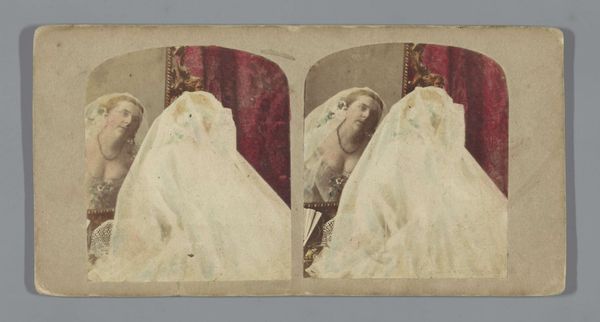 Curator: Looking at Adolphe Block’s "Girl with Basket Leaning Against Stack of Boxes" from sometime between 1855 and 1875, it's fascinating how photography captured genre scenes even back then, very much within the aesthetic spirit of Realism. Editor: My immediate feeling? Tired. There's a weariness that really sinks into her posture, a universal fatigue captured in this little, unassuming photographic portrait. Curator: That’s interesting, and it also underscores how these early photographs offered a novel form of representation. The stereotype of the idealized young girl is complicated here; Block’s portrait hints at social conditions, perhaps commenting on labor through the imagery of this girl with her basket, seemingly exhausted by her labor. Editor: Yes! And the basket, partially obscured—it's like the labor is invisible but still weighs on her. Also, the boxes are kind of ominous. They suggest transit, maybe instability. Were photographs like these popular as social documents, like mini-novels? Curator: Absolutely. Beyond being aesthetically aligned with the Realist movement, early portrait photography like this becomes invaluable to social history, freezing fleeting expressions and realities in time, allowing us to reflect on societal conditions and values ascribed to work, gender, and class. It is the symbolism that charges our memory. Editor: Memory, yes! Seeing her is like tapping into a collective archive of difficult stories. But there's also something intimate about her vulnerability; the picture transcends simple reportage and moves towards empathy. Her pose evokes classical melancholy, even as its rooted in the grit of working-class life. Curator: Precisely—a dance of symbols! This interplay reminds us that realism in art isn’t simply replication, it's a selective engagement with signs and social narratives to communicate complex emotional realities. What seems a simple genre image speaks volumes about cultural identity and perception. Editor: In a strange way, gazing at her feels timeless, almost mythic. The way the pose echoes through art history… I’m unexpectedly moved.