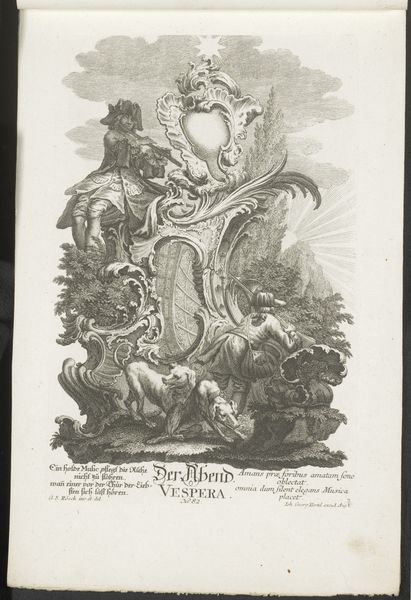 Editor: This is Jakob Wangner's "Isis en Juno," an engraving from between 1731 and 1775. It's incredibly detailed, almost ornate, but also quite dreamlike. I am intrigued by the figure lounging on such an elaborate structure. What stands out to you in this piece? Curator: The first thing that grabs me is the medium itself. Engraving allowed for mass production and distribution of images, shifting art's accessibility and consumption patterns in the 18th century. Look closely. Do you notice the lines and how the density varies to create value? This required tremendous skill, almost like a specialized manufacturing process. Editor: Yes, it's amazing how detailed they were able to get! The way the lines create shadow is fascinating. Was that attention to detail common at the time? Curator: Think about the socio-economic context. Skilled artisans, the engravers, were becoming essential to spreading knowledge and artistic trends. This wasn't necessarily considered high art; it was a form of craft and reproduction used to disseminate images broadly. These weren’t unique works in the same way a painting would have been. Editor: That’s a good point. It shifts my perspective when I think about this as a produced object for wider consumption and not only fine art. So how does considering it craft influence how we appreciate the imagery itself, of the figures and the landscape? Curator: I believe we can examine the imagery in relation to labor and skill involved in engraving this scene, while challenging the high art or craft divide. Are we looking at luxury item or educational material, considering the context of materials, reproduction and class? This pushes us beyond purely aesthetic considerations to the very conditions of the artwork’s existence. Editor: That's a perspective I hadn't considered. Examining the piece as a material object, made through labor and production, opens up new ways to interpret its place in the world. Curator: Precisely. The focus shifts from simply admiring the allegory or the style to understanding the conditions of its creation and its role in the broader social fabric of the time.