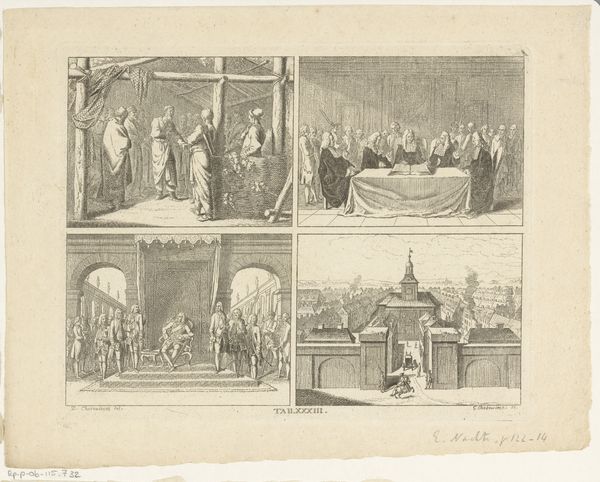 Editor: We are looking at "Odds & Ends, in, out & about, the Great Exhibition of 1851," a print and drawing by George Cruikshank from 1851. It has a cartoonish style and feels very observational. What do you see in this piece? Curator: I am immediately struck by the means of production: a pen-and-ink sketch reproduced as an engraving, making it widely available. This itself speaks volumes about Victorian society and its hunger for visual representations of events. Notice how the print’s format mimics a newspaper comic strip, dissecting the spectacle of the Great Exhibition into vignettes. What does that say about popular reception of such events? Editor: It's interesting how the format makes the exhibition accessible, even if satirically. It's a form of mass media engagement. Curator: Exactly. Cruikshank’s use of relatively inexpensive materials and printing techniques democratized access to this commentary, reaching a broad audience and fostering public dialogue, unlike, say, an oil painting destined for a wealthy collector. Think about the labor involved in both creating the original sketch and reproducing it on a mass scale. That is to say, what’s the social implication of his choices in materials and techniques? Editor: It's about bringing a critical perspective to the masses, then. It does so by challenging the conventional "high art" status associated with fine art. Curator: Precisely. It blurs the boundaries and questions the very notion of artistic value, as seen through materials and production. Editor: This focus on production and reception makes me rethink how I perceive historical prints; I need to consider their social impact! Curator: Indeed. It’s about materials and mass culture; understanding how they shaped, and were shaped by, artistic expression and audience consumption in that era.