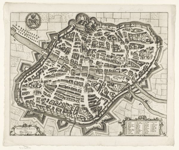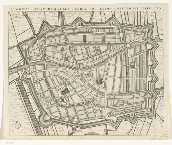 Editor: This is "Plattegrond van Utrecht," a 1778 ink and engraving drawing by Reinier Vinkeles, housed at the Rijksmuseum. The intricate detail is just captivating. What first strikes me is how meticulously planned the city appears to be. What do you see in this piece? Curator: I see a powerful projection of civic pride and control, expressed through cartography. Notice the way the city is framed not just by walls, but also by elaborate ornamentation filled with figures on the edges: these aren't merely decorative elements. They represent Utrecht's self-image, invoking classical and perhaps even religious associations. Does the orderliness remind you of any other representations or architectural floorplans? Editor: It does evoke thoughts of military fortifications from the same era. The grid-like street layout and the prominent defensive walls suggest a concern for security. I guess the cherubs felt a bit out of place until now. So, the layout and even decorative framing acts like a message? Curator: Precisely! The map becomes a symbolic representation of Utrecht’s values and priorities at the time. Think of maps not just as neutral tools, but rather as cultural artifacts meant to communicate a particular narrative and reaffirm cultural memory. Each tiny street, each building, each symbol works to convey the essence of Utrecht. Consider also how the visual language used to portray streets, buildings, and even the landscape itself communicates particular ideas. Editor: So, what looks like just an informative city plan is actually laden with carefully chosen symbols that offer insight into Utrecht's identity? Curator: Exactly. The map allows us to visualize a moment in time, capturing the physical form and symbolic representation of a powerful city and understand how cultural memory persists through such symbols. Editor: That's amazing. I never would have thought about a map in such depth. Thanks for highlighting the symbolism behind it! Curator: My pleasure. It’s a valuable reminder that art exists everywhere if we look closely!